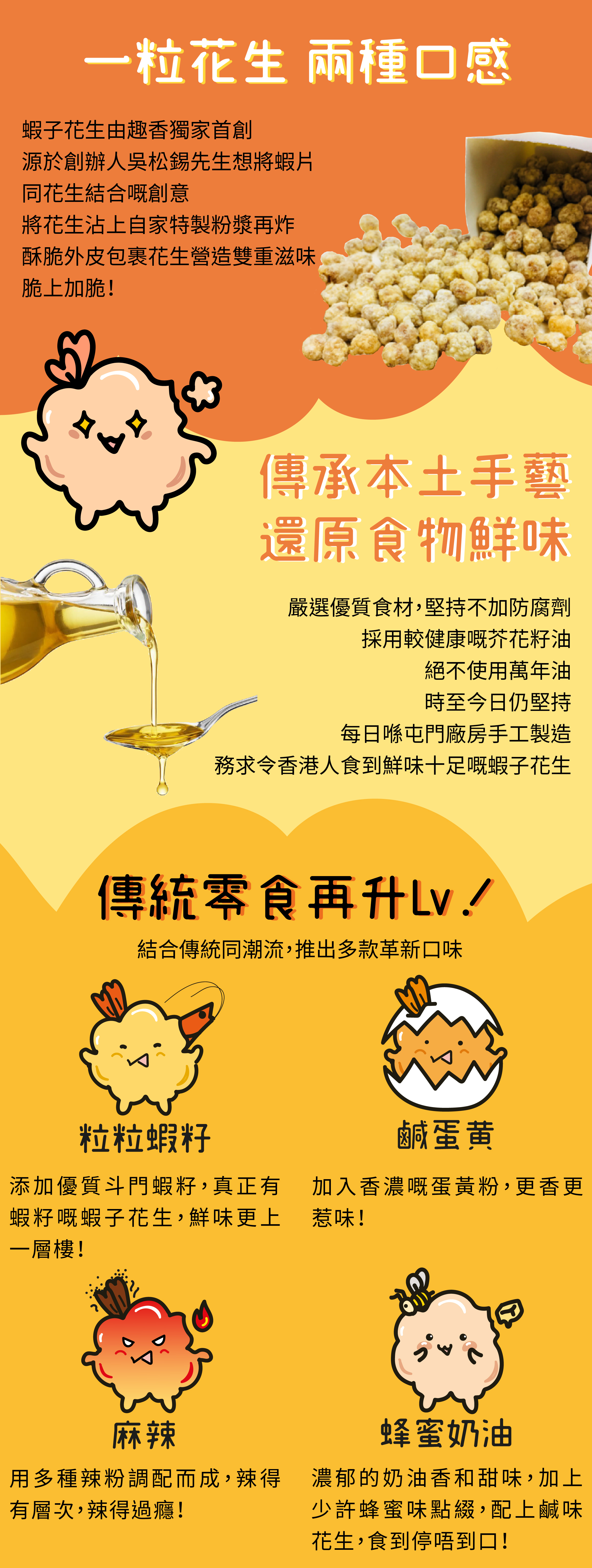 新套裝有齊7款口味嘅蝦子花生,套裝價即慳$30,升級後更抵食!